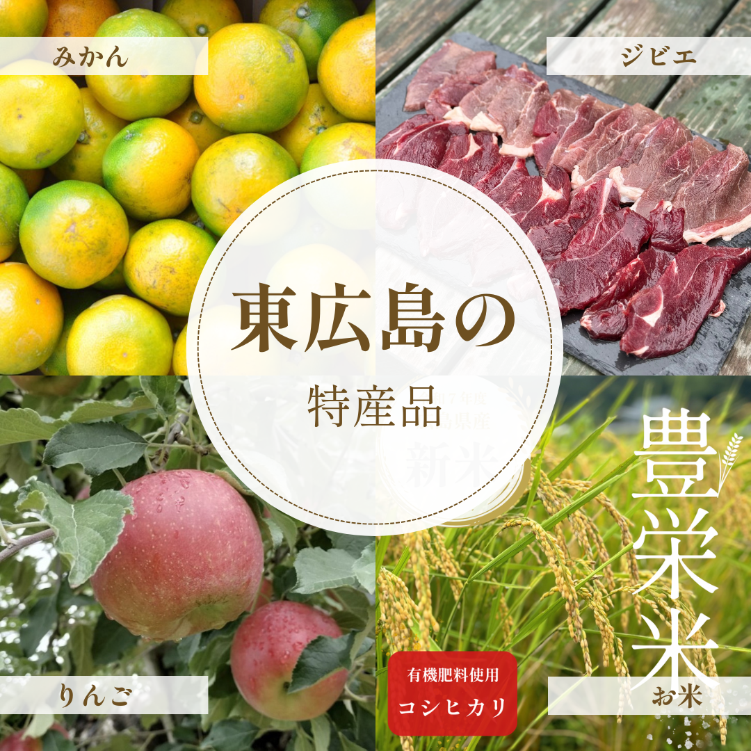 広島県のど真ん中に位置する東広島市。 安芸津町(あきつちょう)は瀬戸内海に面しているの温暖な気候、豊栄町(とよさかまち)は盆地となり昼と夜の寒暖差がしっかりあるので、野菜も果物もギュッと甘みを蓄えて、味が濃くて美味しいんです。 ここでは、そんな東広島の自然の恵みをたっぷり受けた特産品をご紹介! 瀬戸内海の風と太陽をたっぷりと浴びた柑橘、豊栄町の美味しいお米コシヒカリ、りんごなど、作り手の顔が見える安心の農産物ばかり。盆地ならではの気候が育てた、肉厚でシャキシャキ食感と濃い味わいが自慢です。また、猪や鹿といったジビエもありますよ♪ 東広島の美味しいもの、ぜひ味わってみてください!