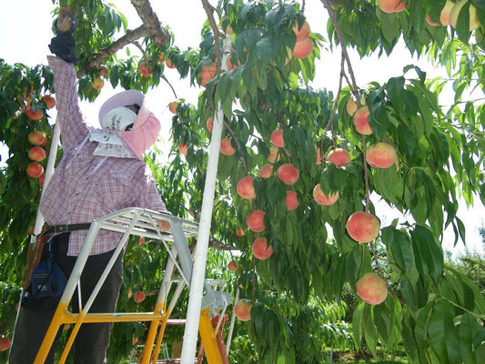 山梨県で誕生したさくら白桃は、桜井昭八氏が「川中島白桃」と「千曲」を交配させて選抜育成された品種です。