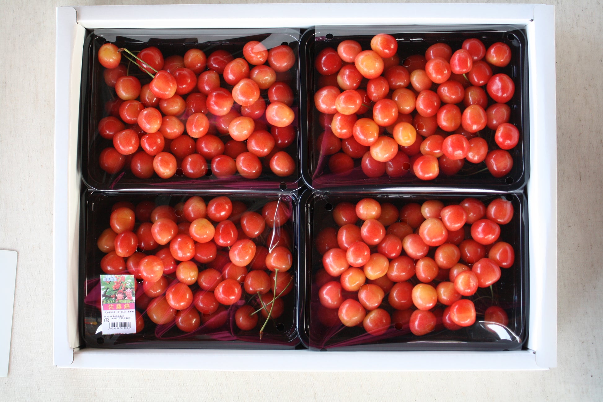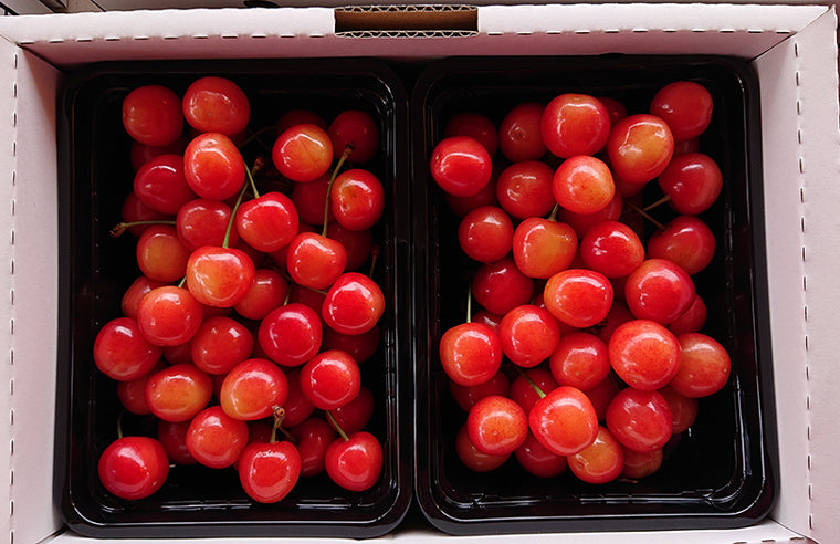 | 注意事項 | 輸送中に乱暴に扱われてしまうと、箱の中でさくらんぼの軸が取れる現況が起きます。 箱の中身を確認いただき、そのような状況がありました時はご連絡をお願い致します。 スマホなどで画像を撮影して送っていただけますとありがたいです。 状況確認後配送会社とやり取りをして、新しい商品をお送りさせていただきます。 |