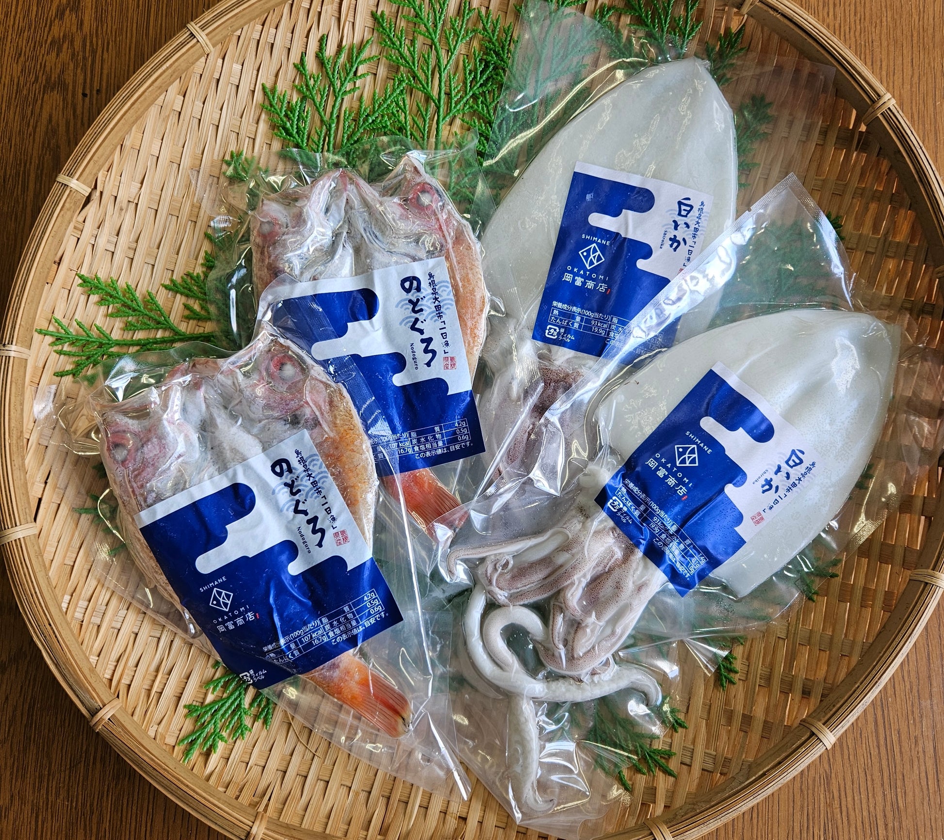 岡田さんが作るのどぐろと白いかの一夜干しセットとなります。
